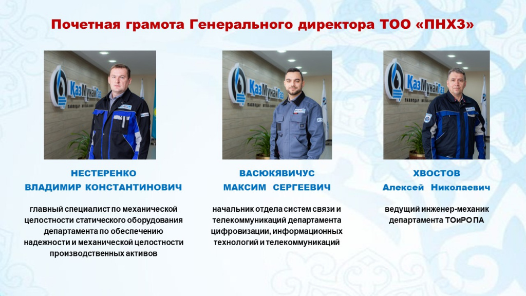 Зауыттың 17 жұмыскері «ПМХЗ» ЖШС бас директорының Құрмет грамотасымен марапатталды.