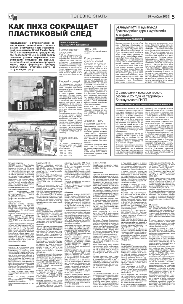 ПНХЗ стал обладателем почётного сертификата уровня Gold национального проекта Smart Plastic Zone, объединяющего ответственный бизнес. Завод вошёл в число первых промышленных предприятий страны, удостоенных такой высокой оценки в 2025 году.