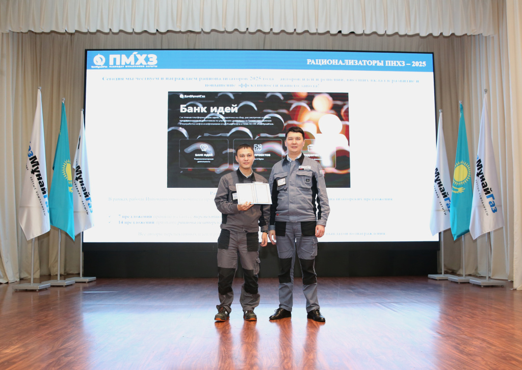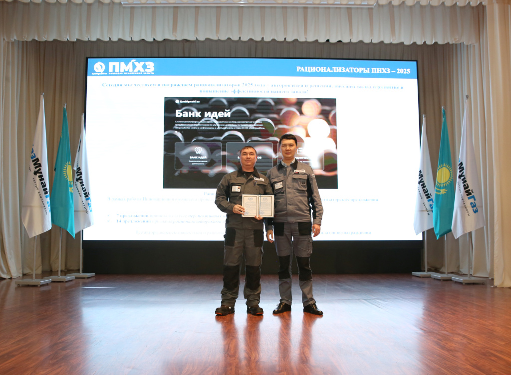 за предложение «Переход на 24-часовой цикл коксования на установке замедленного коксования производства переработки тяжёлых нефтяных остатков» награжден заместитель начальника установки замедленного коксования производства переработки тяжёлых нефтяных остатков Аубакиров Сабыржан Багланович.