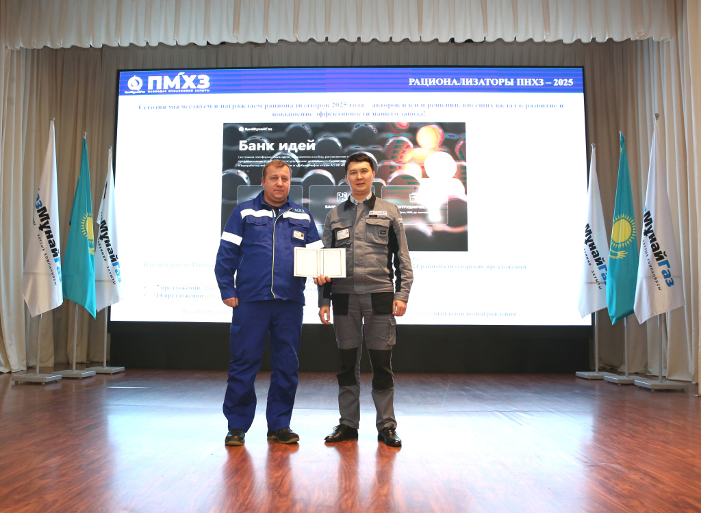 Рационализаторское предложение «Возможность мониторинга технологического состояния абсорберов МДЭА» награжден инженер-технолог технического отдела Сапаров Рахат Алибекович,
